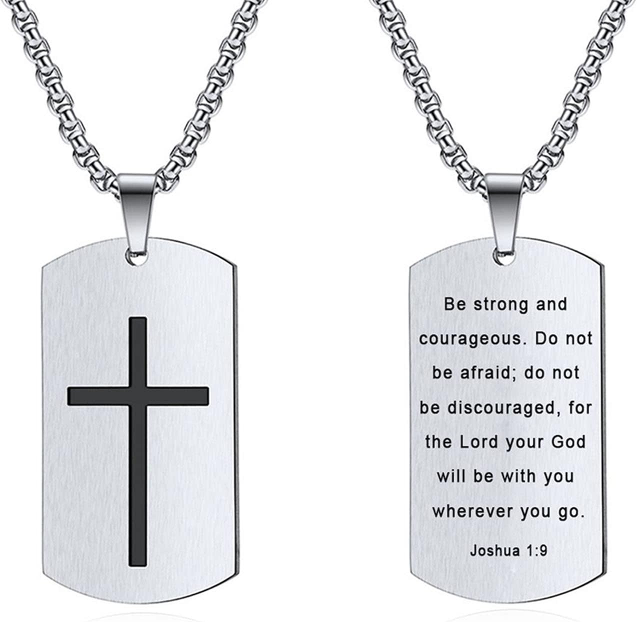 Rnivida Men's Bible Verse Cross Tag Pendant Necklace, Stainless Steel Christian Inspirational Necklace Jewelry for Men