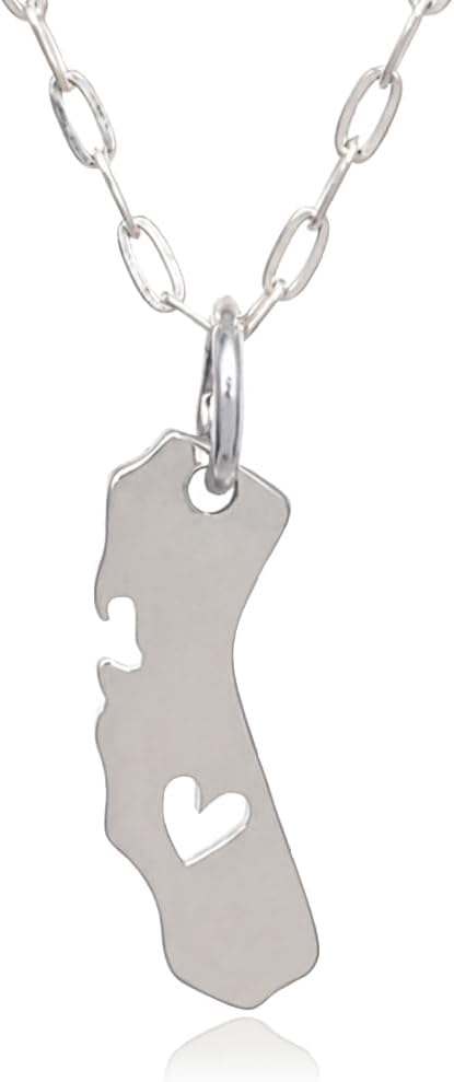 EnCharmed Sterling Silver Heart of California Charm Necklace, West Coast Girl Golden State Pendant Jewelry, 18"