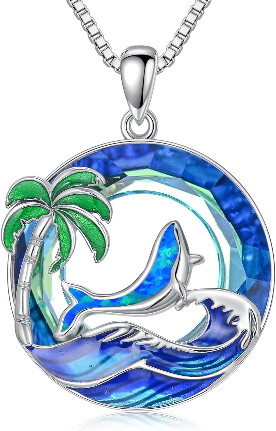 YYB Christmas Gifts Ocean Jewelry 925 Sterling Silver Tropical Beach Wave Palm Tree Necklace for Women Anniversary Birthday Gifts for Her