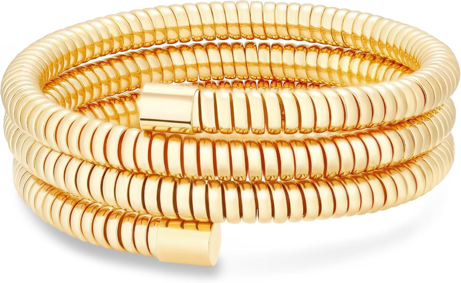 Chunky Gold Beaded Bangle Bracelet Set Stack for Women Men Stretchy Snake Link Chain Flexible Wide Wristband Bangles Bracelets