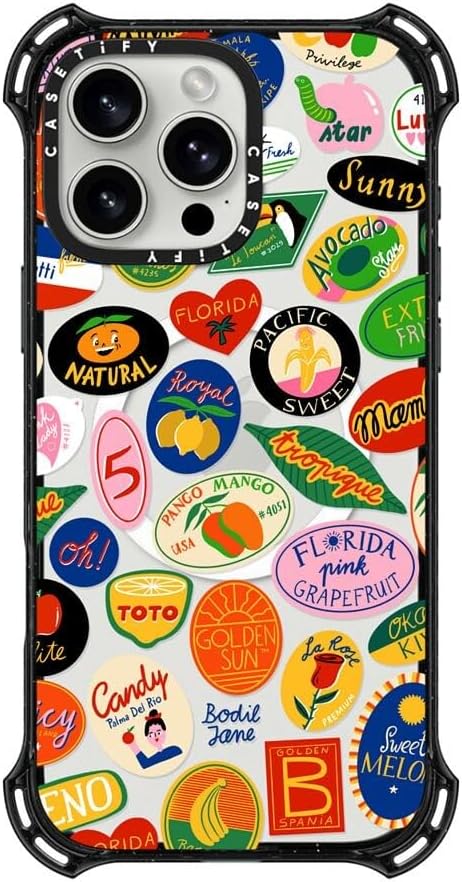 ![CASETiFY Bounce Case for iPhone 16 Pro Max [Shockproof / 21.3 ft. 6X Military Grade Drop Protection/Compatible with Magsafe] - Fruit Stickers - Clear Black - Image 4](https://m.media-amazon.com/images/I/61bVT0fEoFL._AC_SL1000_.jpg)