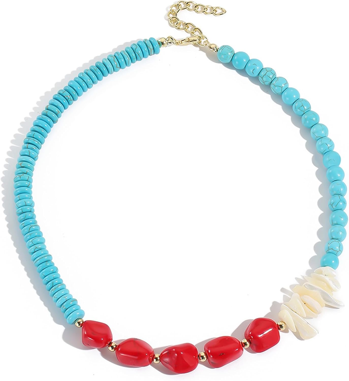 HETICA Turquoise Bead Necklace Suitable for Women Adjustable Bohemian Red Turquoise Shell Necklace Jewelry