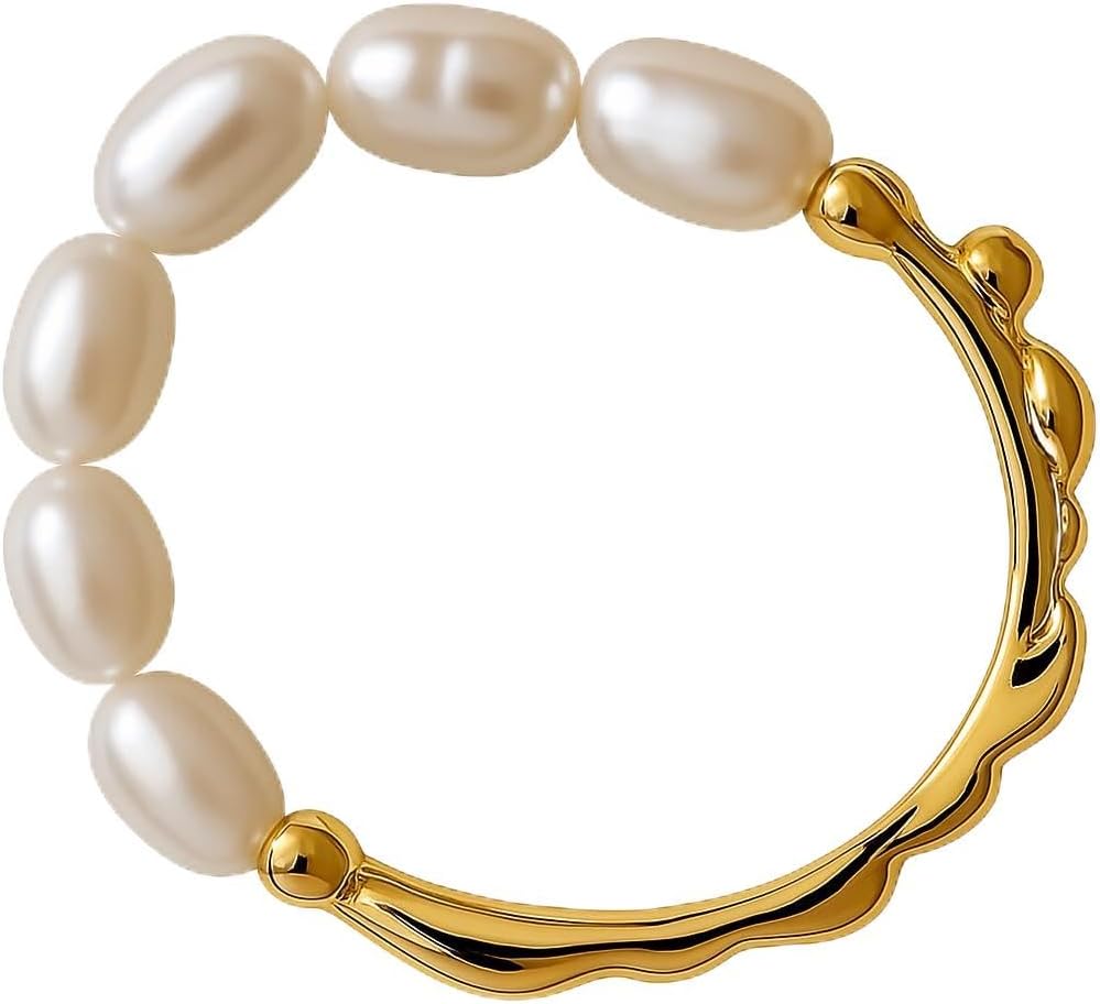 Gold Pearl Ring for Women - Adjustable 14k Gold Cute Engagement Ring Dainty Pearl Finger Ring