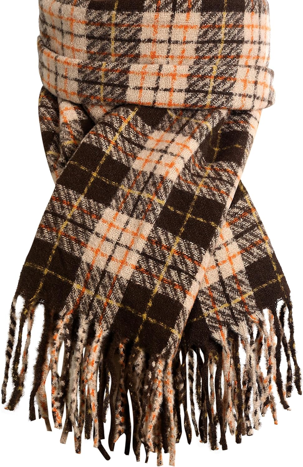 Winter Scarf for Women, Fashion Plaid Blanket Scarves with Fringe, Long Soft Scarf Shawl Wraps