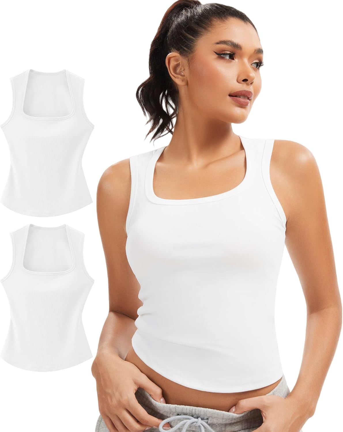 Women's Ribbed Cotton Tank Top Sleeveless Square Neck Tank Slim Fitted Knit Casual Tops Shirts