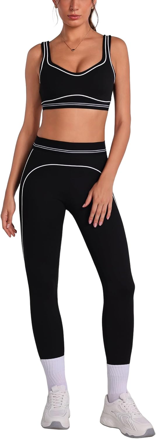 ABOCIW Womens Workout Sets 2 Piece Yoga Outfits Contouring Contrast Stitching Sports Bra High Waist Leggings Gym Sets
