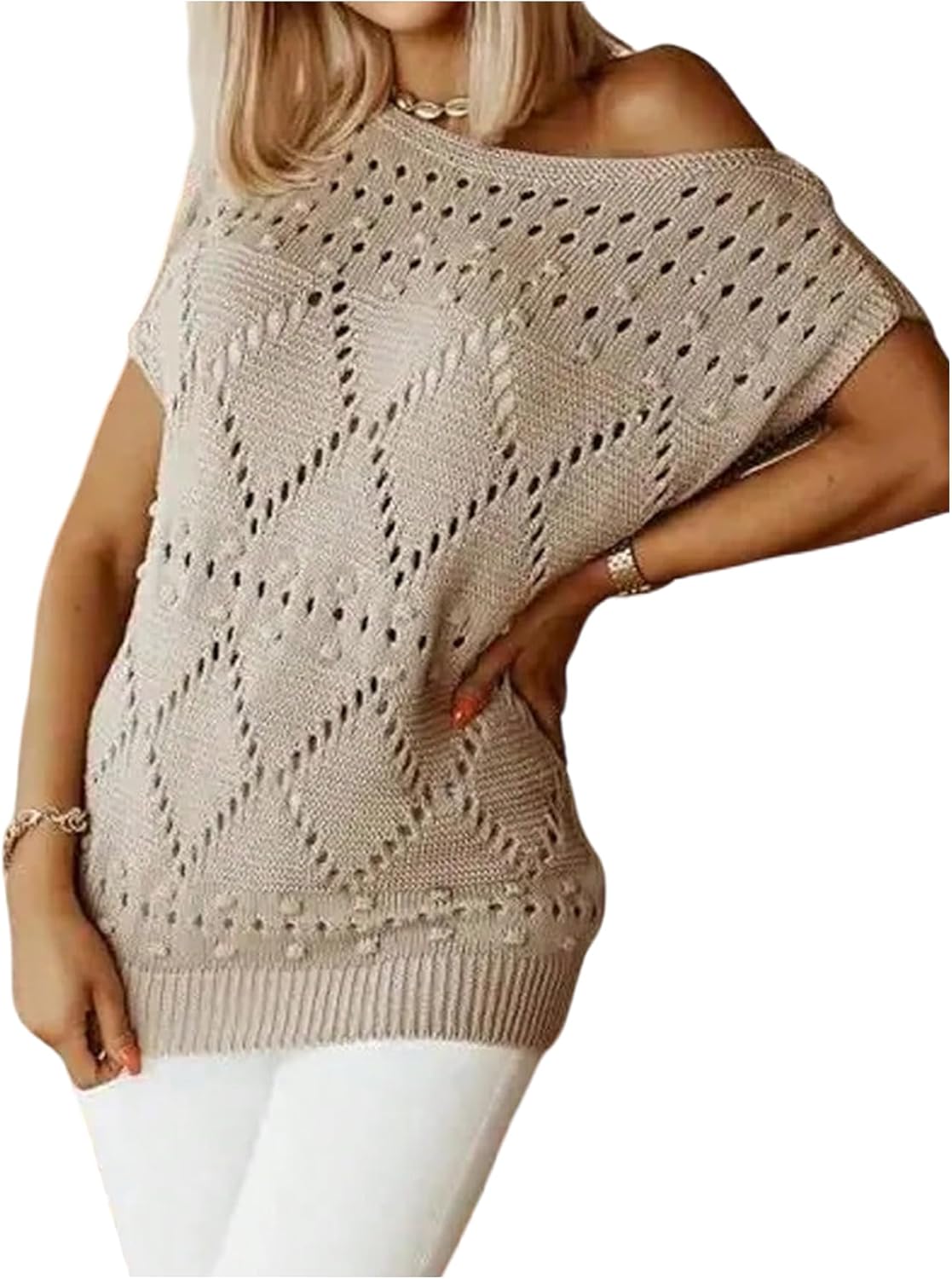 Women's Crochet Tank Tops Hollow Out Sleeveless Sweater Vest Knit Short Sleeve Knit Pullover Spring Tops