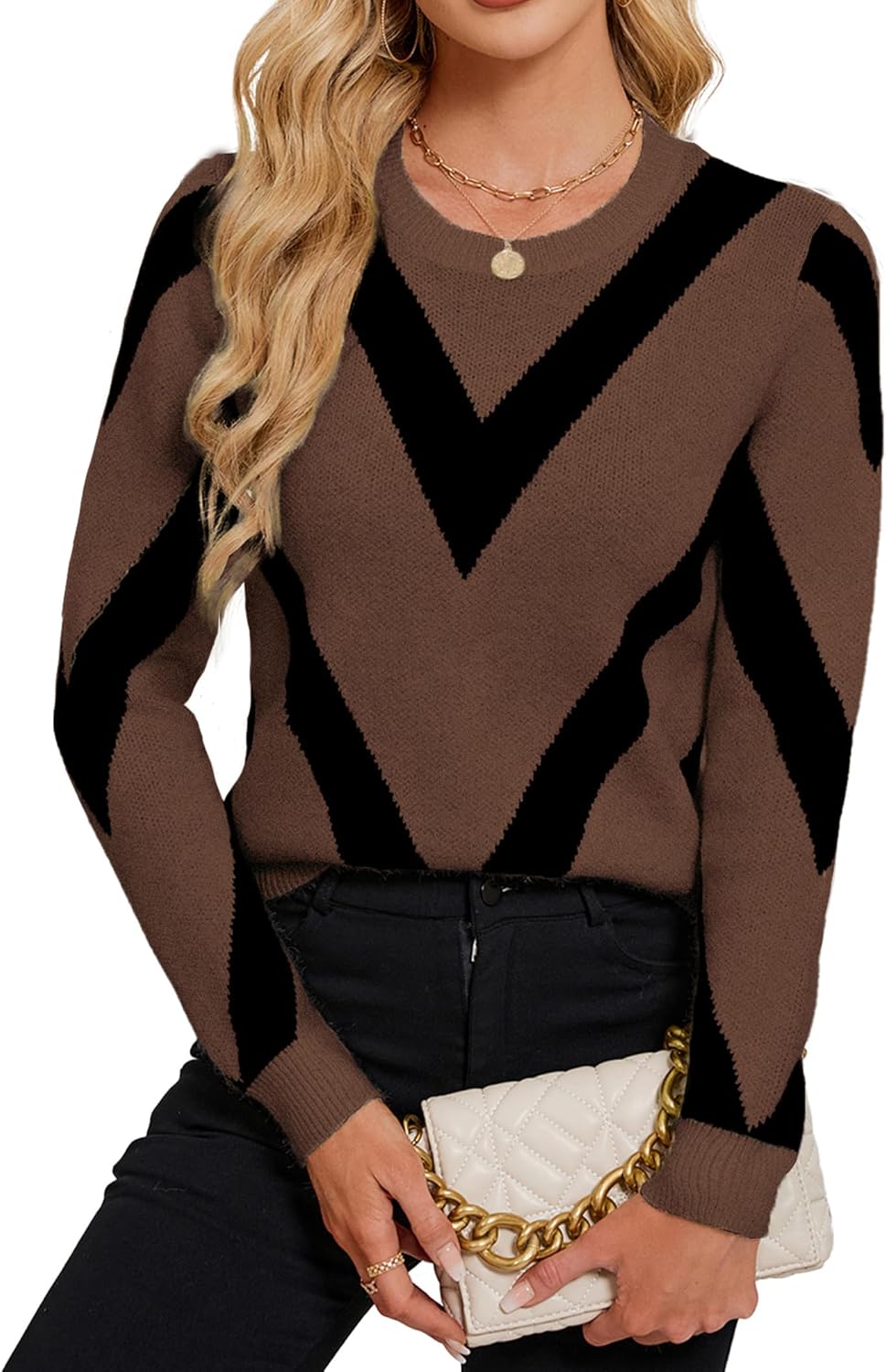 Womens Dressy Casual Color Block Striped Sweater Fall 2025 Trendy Outfits Lightweight Ribbed Knit Pullover Top