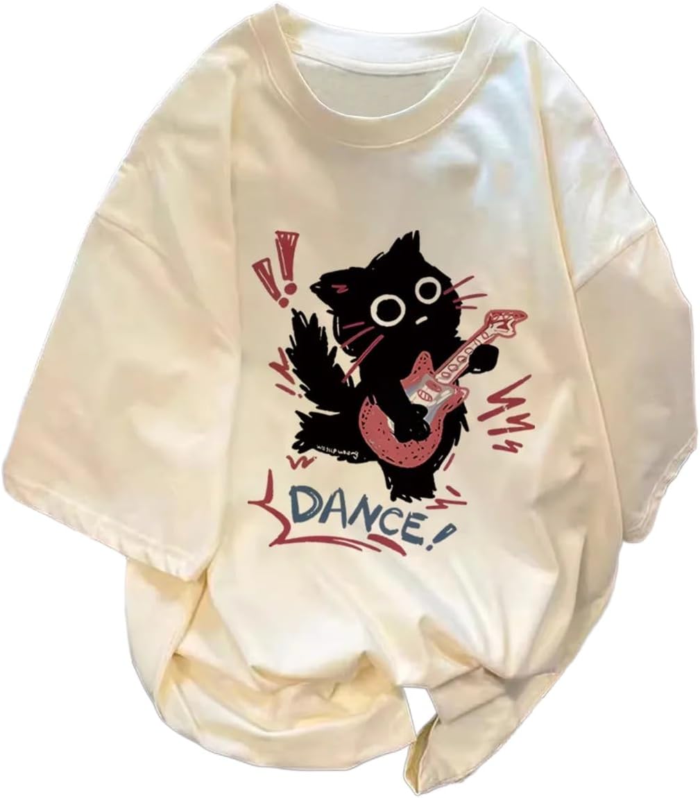 Harajuku Oversized Shirts Goth Punk Cat Print Tees Summer Streetwear Casual Baggy Tshirts Y2k Tee Tops