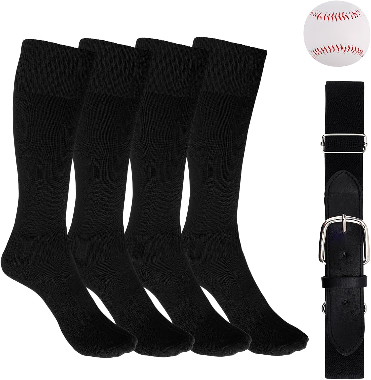 Youth Baseball Socks and Belt Combo Set, Kids Soccer Softball Football High Knee Socks, Adjustable Sport Athletic Belt & Gear Stuff Accessories for Boys Girls (Black, S)