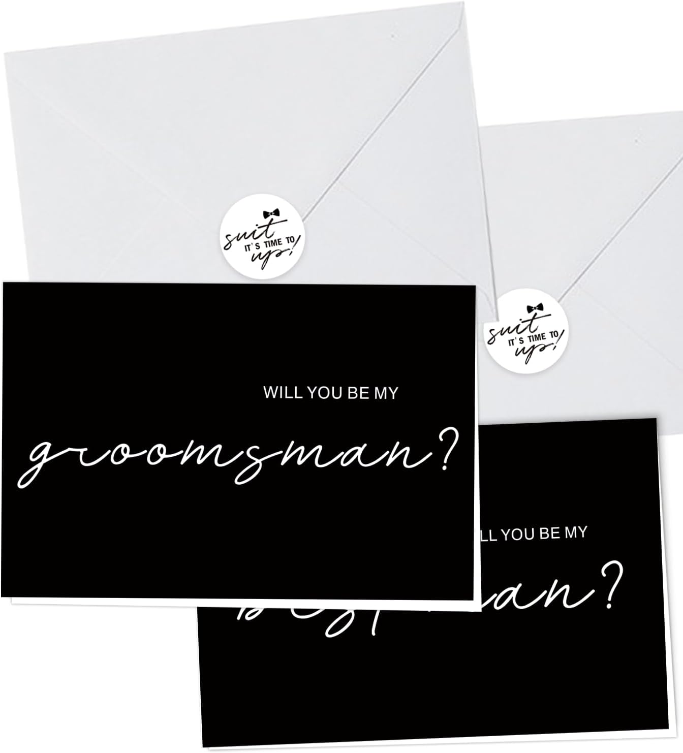 - ELEGANT DESIGN: Black and white minimalist groomsman proposal cards featuring stylish script typography and modern layout