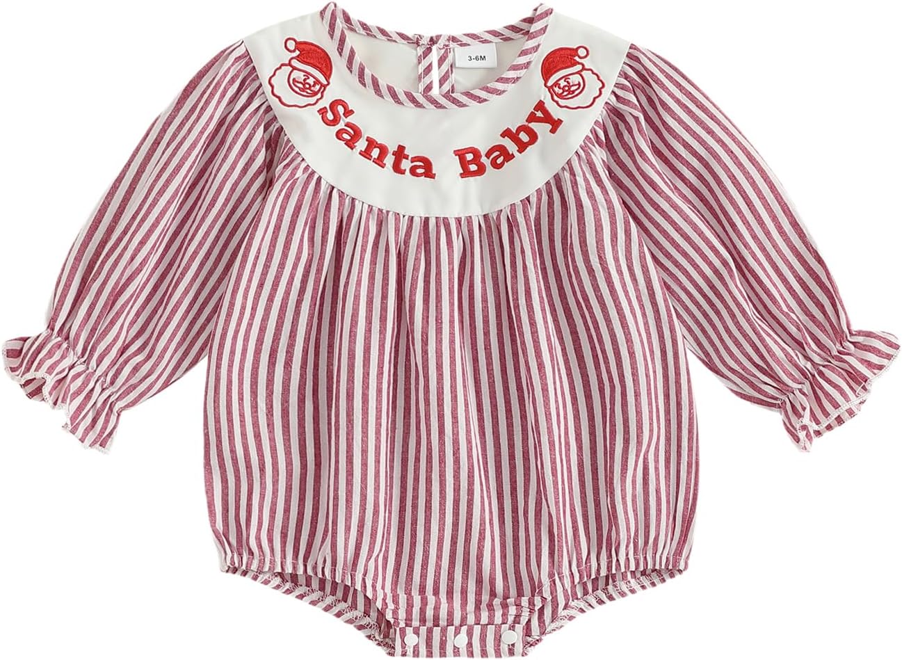My First Valentines Day Baby Girl Outfit Love Embroidery Smocked Romper Long Sleeve Striped Onesie Cute Clothes