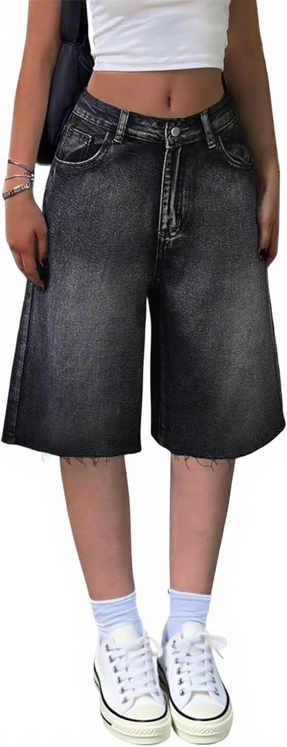 LovelyWholesale Baggy Jorts Bermuda Shorts for Women Knee Length Low Rise Denim Jean Shorts