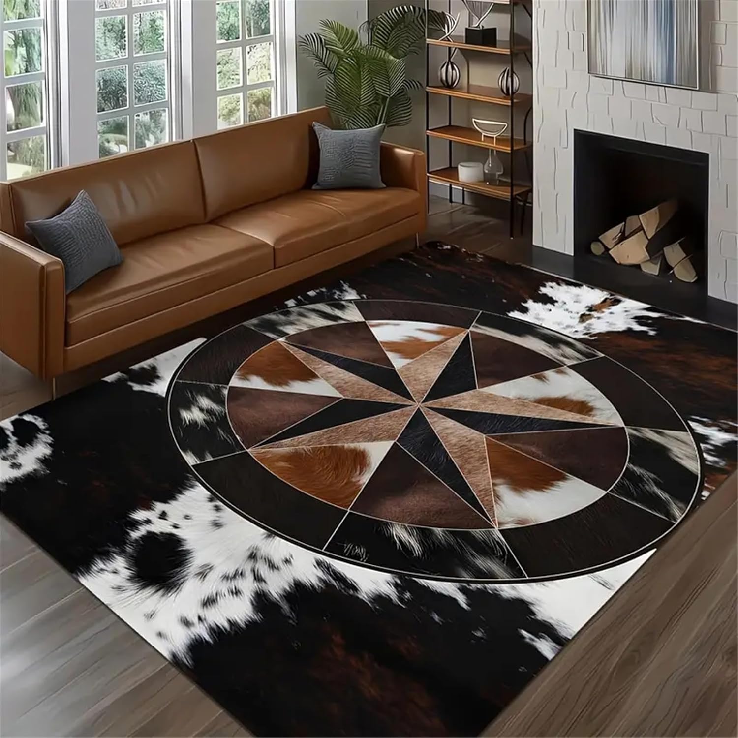 - 【Authentic Western Dual Design】 – Features well-designed Texas star rug patterns and cow print rug motifs, perfect as western rugs for living room or rustic area rug to elevate ranch-style decor. Combines cowhide rug authenticity with western decor flair