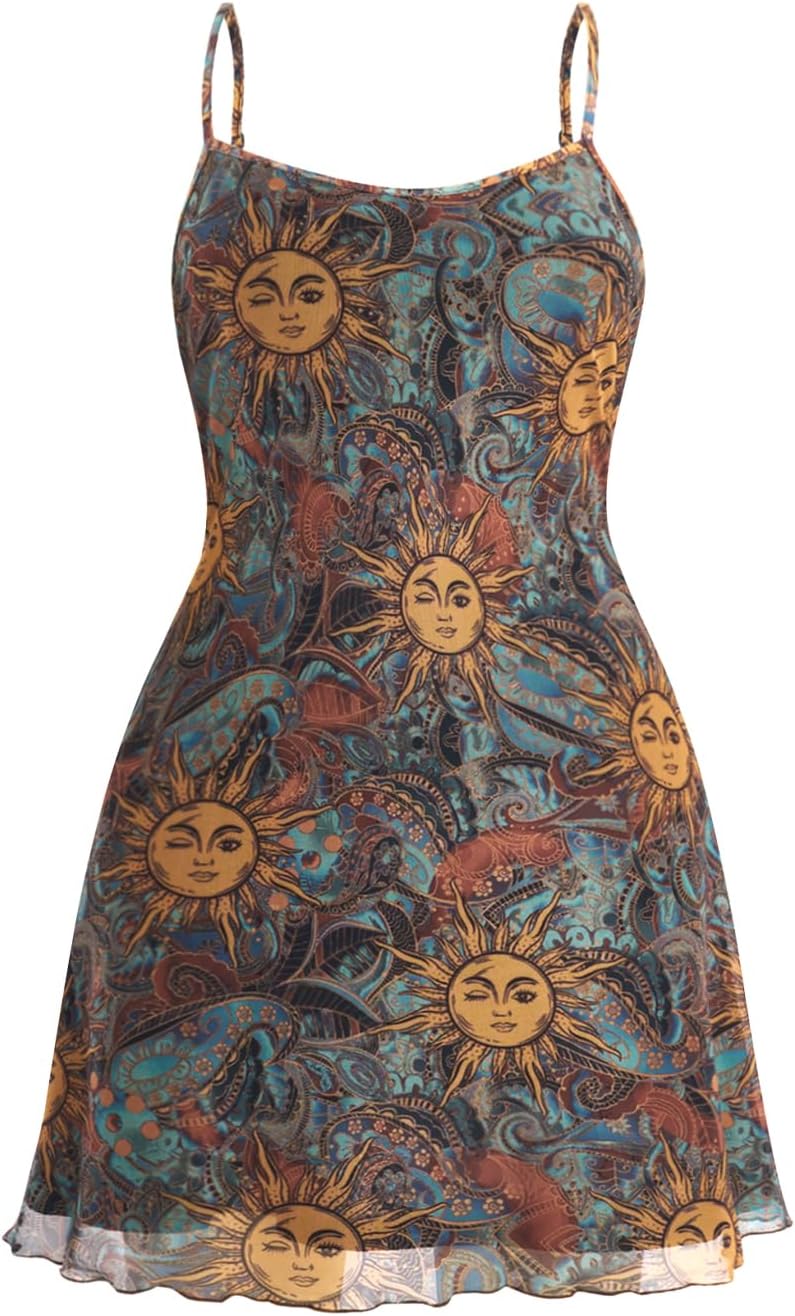 Milumia Women's Summer Mini Dress Vintage 90s Spaghetti Strap A Line Mesh Short Dresses Sun Dress