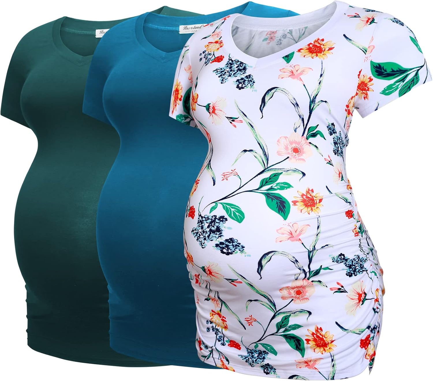 Bearsland Womens Maternity Tshirt Modal Classic Side Ruched Tee Top Mama Pregnancy Clothes