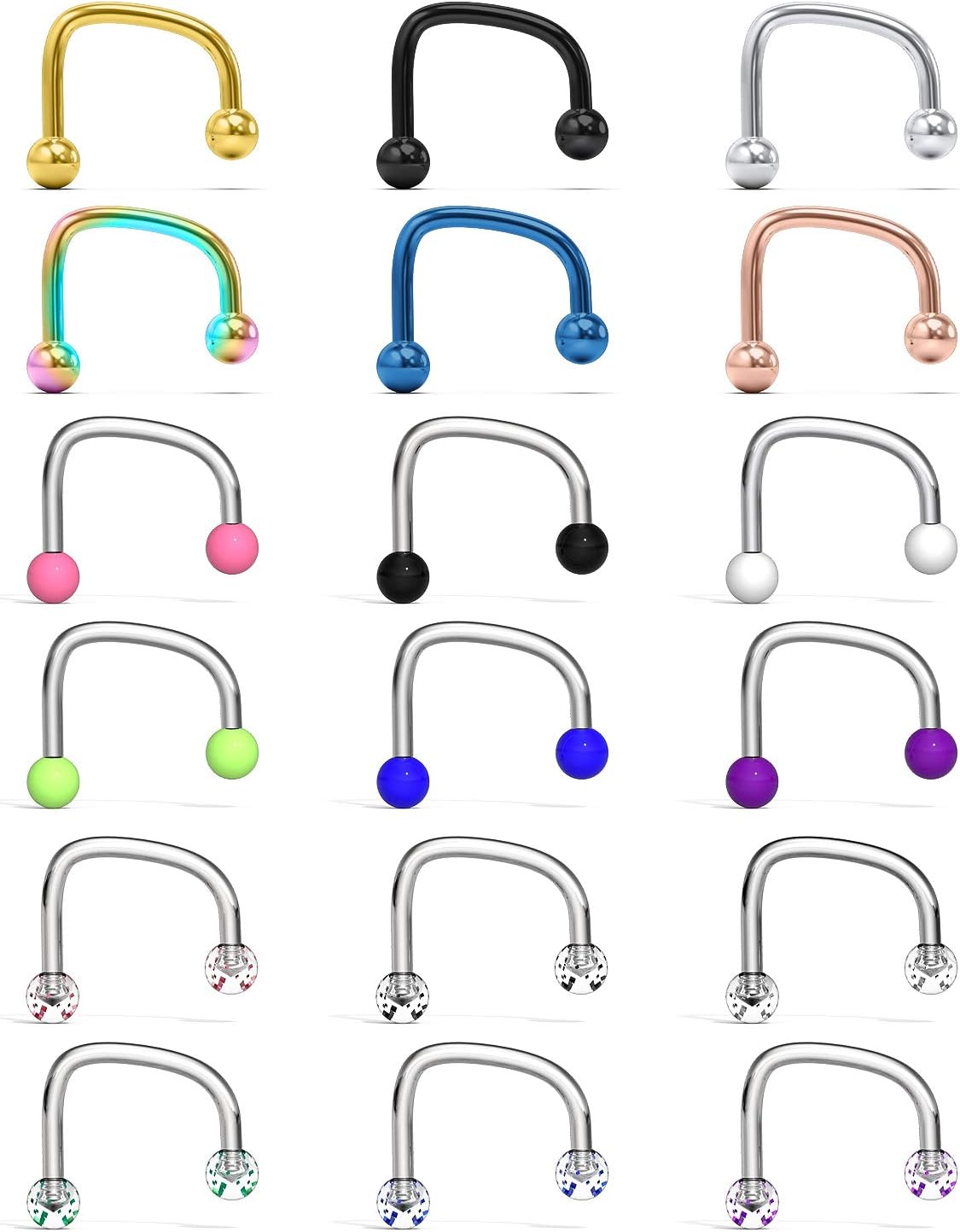 Lcolyoli 16G Surgical Steel Lip Hoop Rings C-Shaped Barbell Monroe Labret Medusa Piercing Jewelry for Women Men 18 Pieces