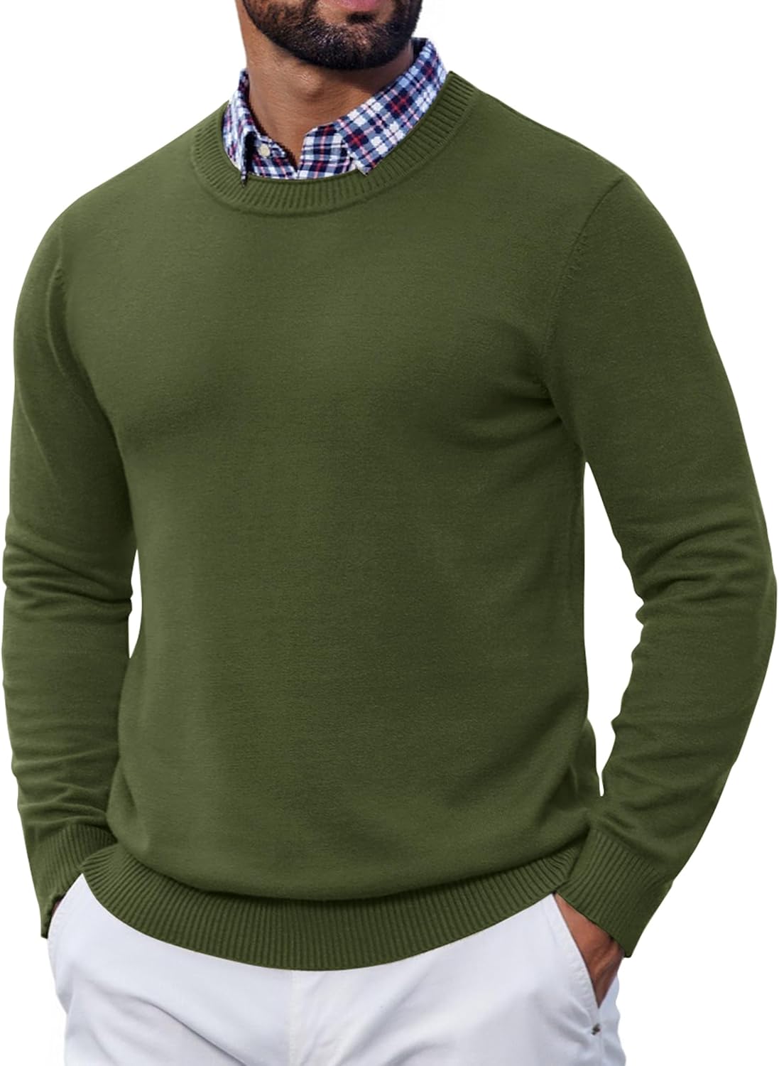 COOFANDY Mens Crewneck Sweater Pullover Knit Sweater Lightweight Sweaters with Ribbing Edge