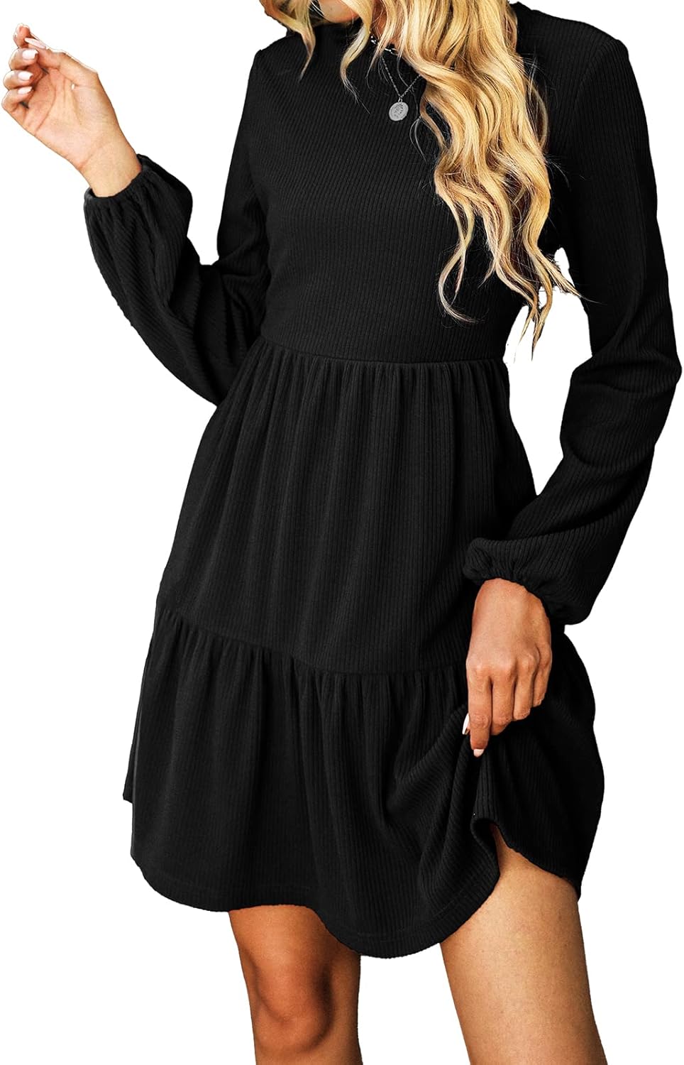 CUPSHE Women's Mini Fall Dresses Knit Casual Long Sleeve Crew Neck Flowy Tiered Ruffled Short Sweater Dress