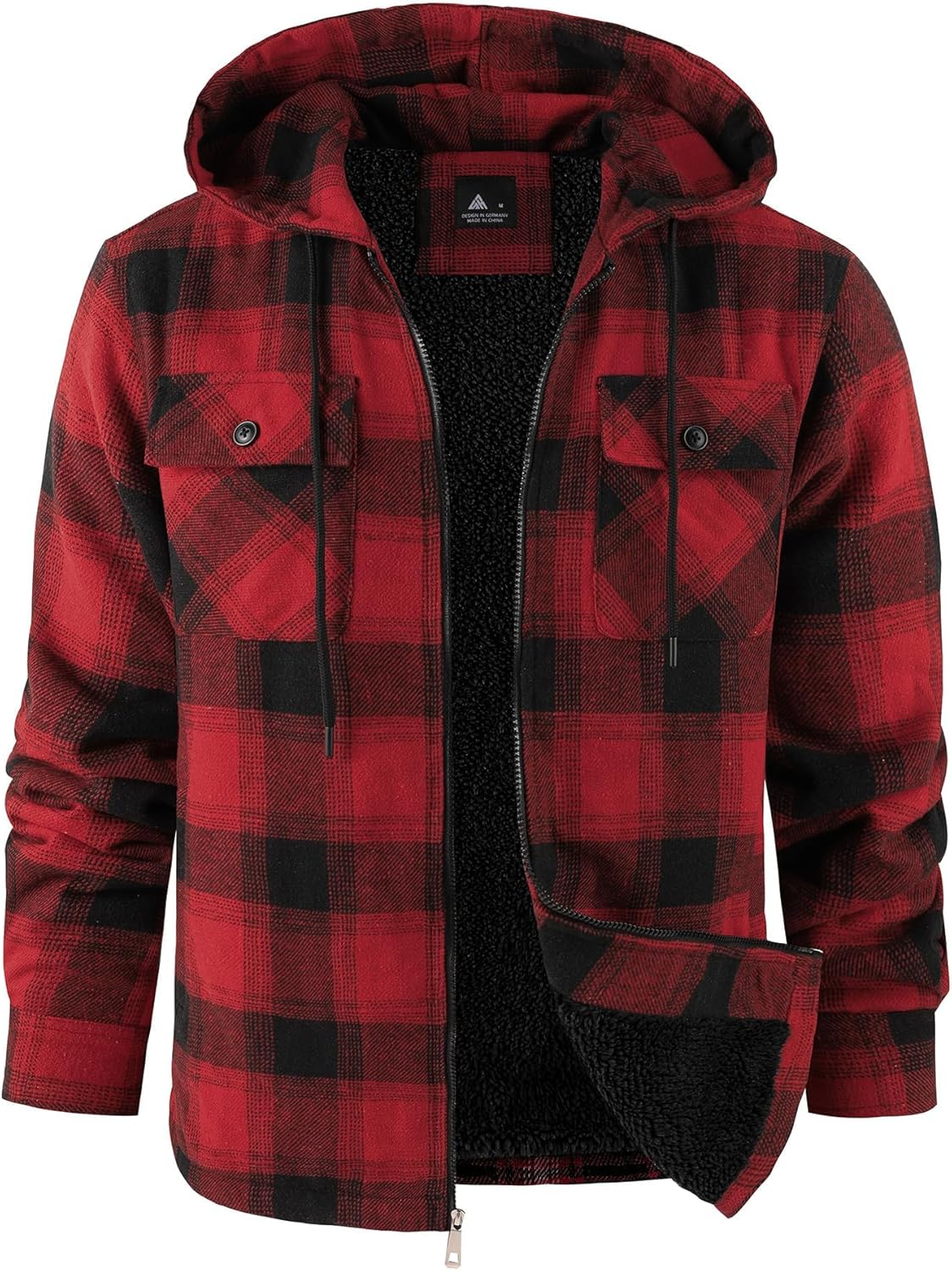 ZITY Men's Flannel Hooded Jacket Fleece Sherpa Lined Plaid Shirts Jackets Zip Up Sweatshirt Hoodies for Men with 4 Pockets