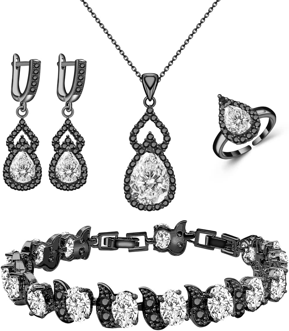 LMXXVJ Women Jewelry Set Platinum Plated Necklace Open Ring Earrings Bracelet Set,Birthday/Anniversary Mother’s Day Jewelry Gifts for Mom/Wife/Sister/Best Friend