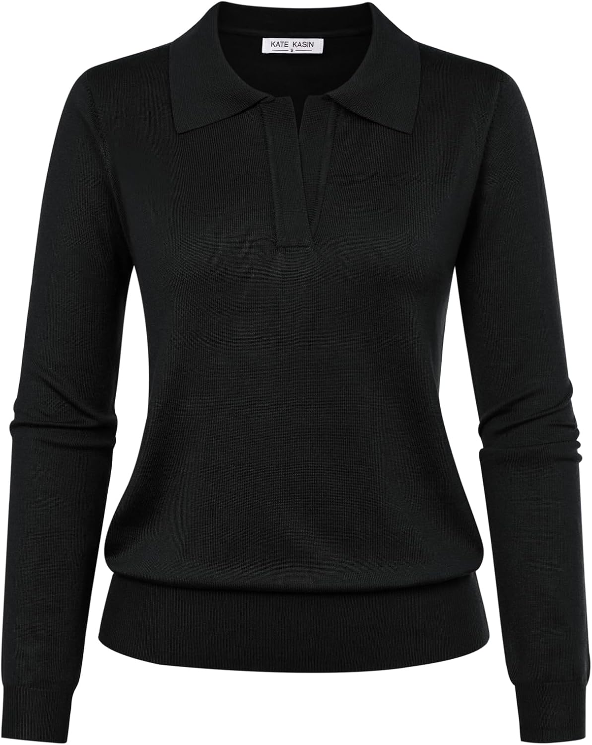 Kate Kasin Women Long Sleeve Polo Sweater V Neck Knitted Tops Casual Ribbed Shirt Loose Pullover Sweater