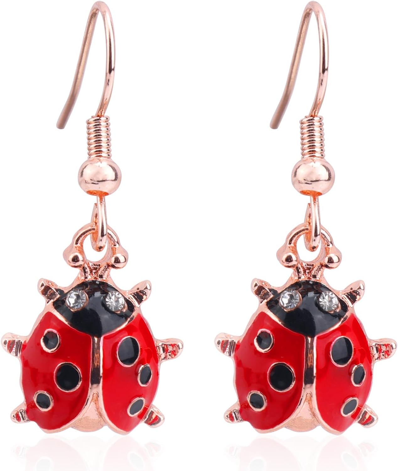 Black Spot Red Ladybug Hook Earrings, Metal Fashionable Seven-Spotted Lady Bug Ear Hook Funny Dainty Summer Dangle Drop Earrings Jewelry for Women