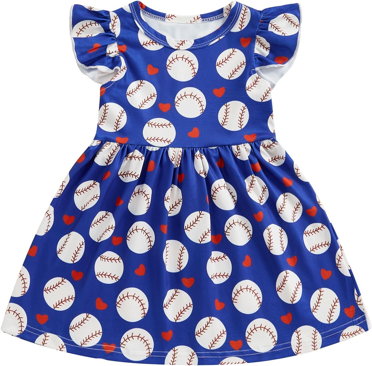 Toddler Baby Girl Baseball Clothes Baseball Print Twirly Dress Flutter Sleeve Swing Sundress Casual Summer Dresses
