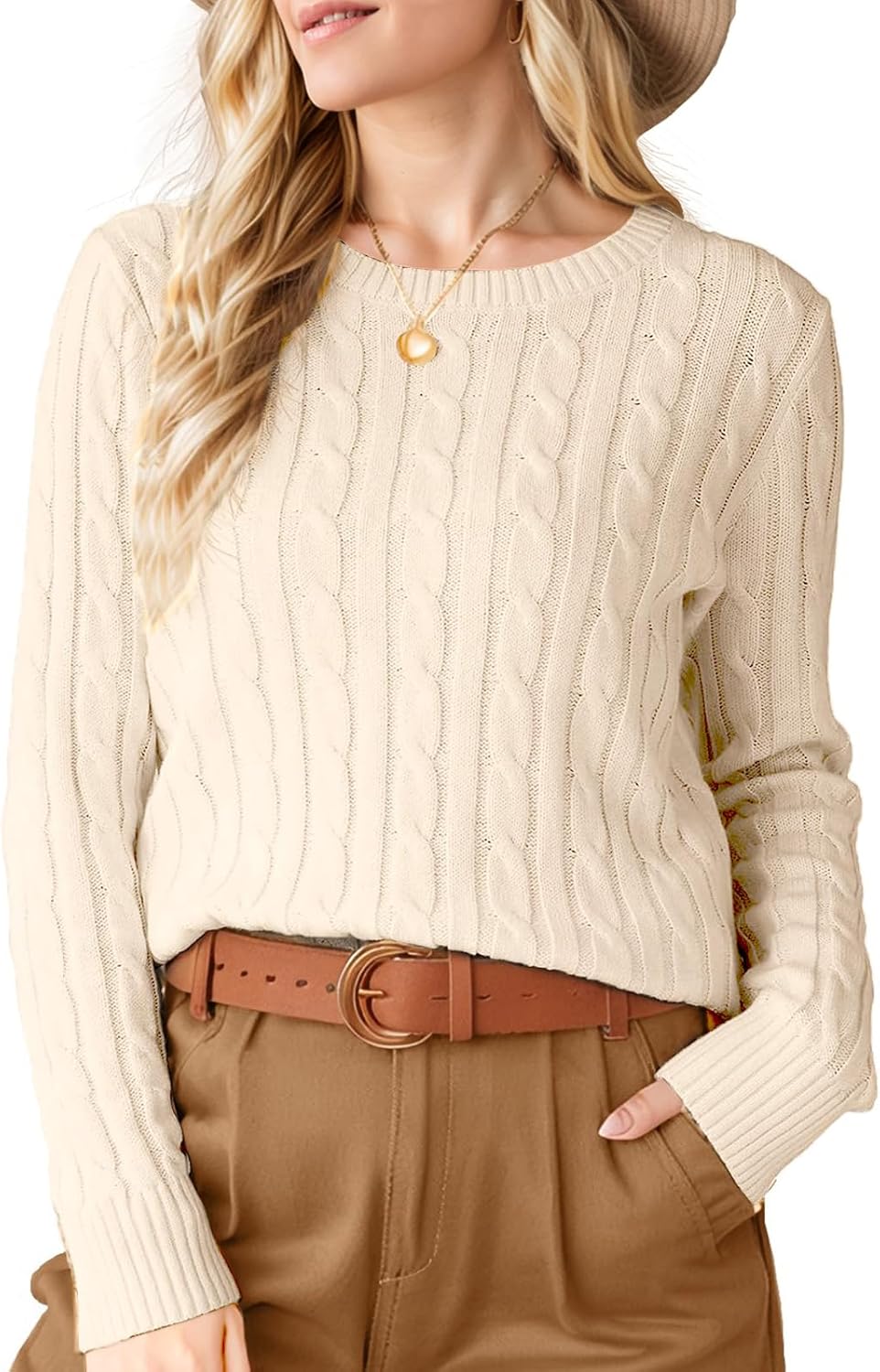 Womens Winter Fall Sweaters 2026 Trendy Cable Knit Long Sleeve Crewneck Tops Casual Outfit Sweater for Women