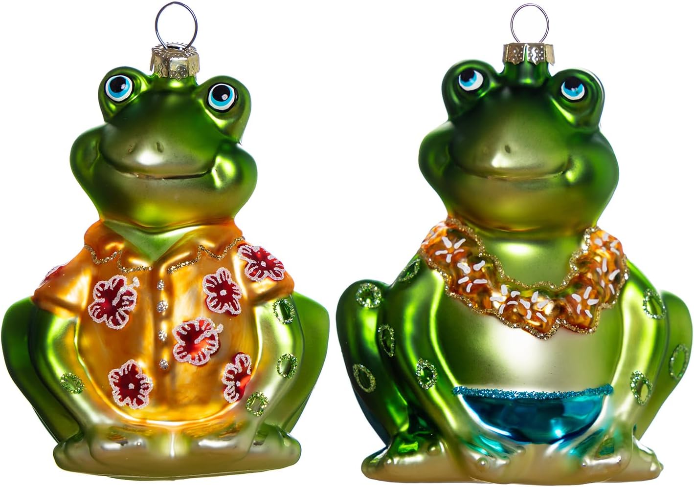 Set of 2 Hand Blown Glass Frog Ornaments for Christmas Tree, Hanging Glass Frog Christmas Ornaments