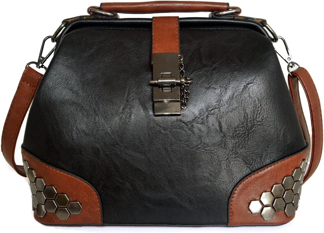 Mn&Sue Gothic Rivet Studded Vintage Doctor Style Cross Body Convertible Bucket Shoulder Handbag for Women