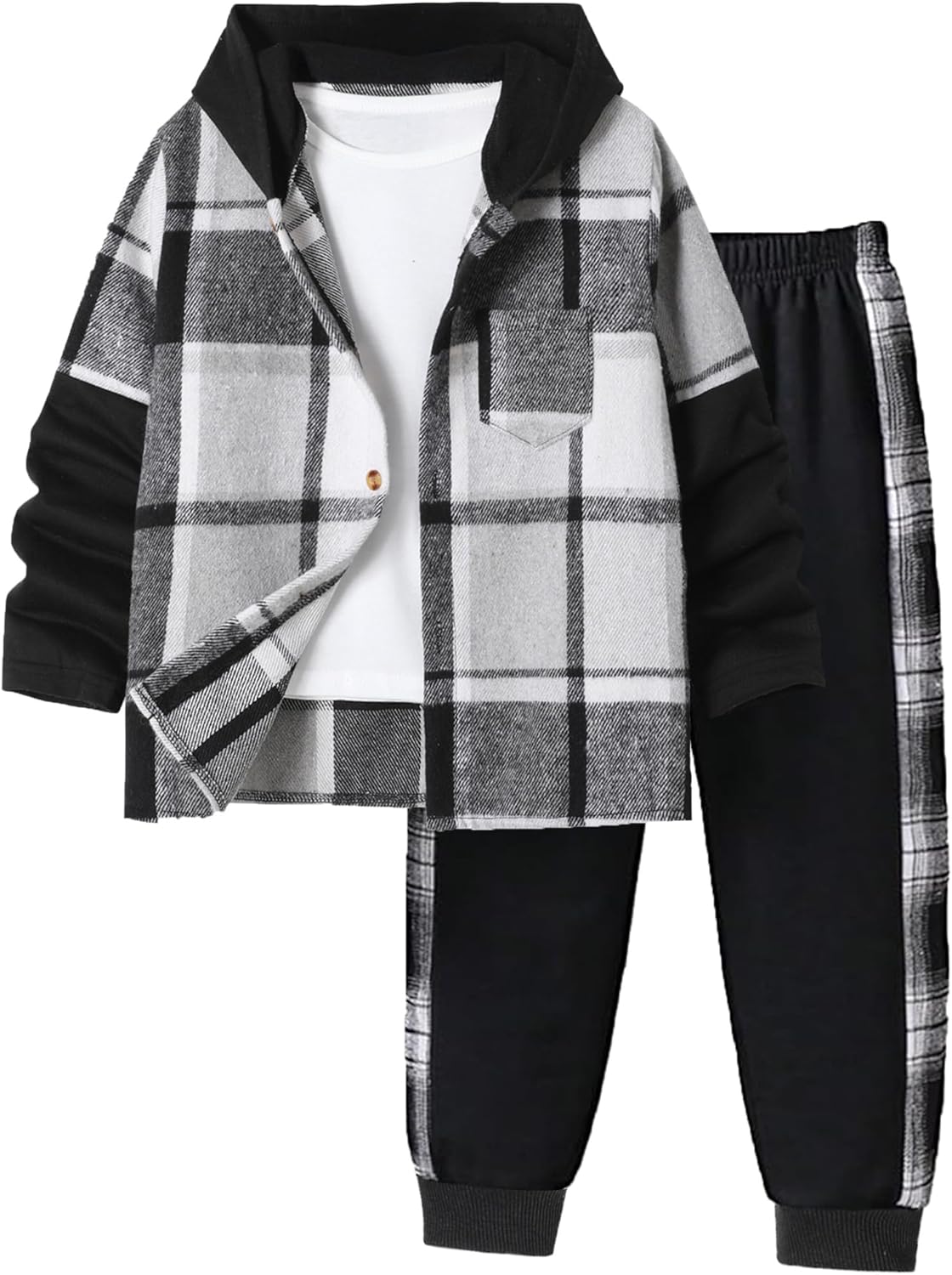 Boys Clothes Plaid Hooded Shirt Top and Sweatpants 2PC Kids Clothes Boys Fall Winter Outfits for 6-16 Years
