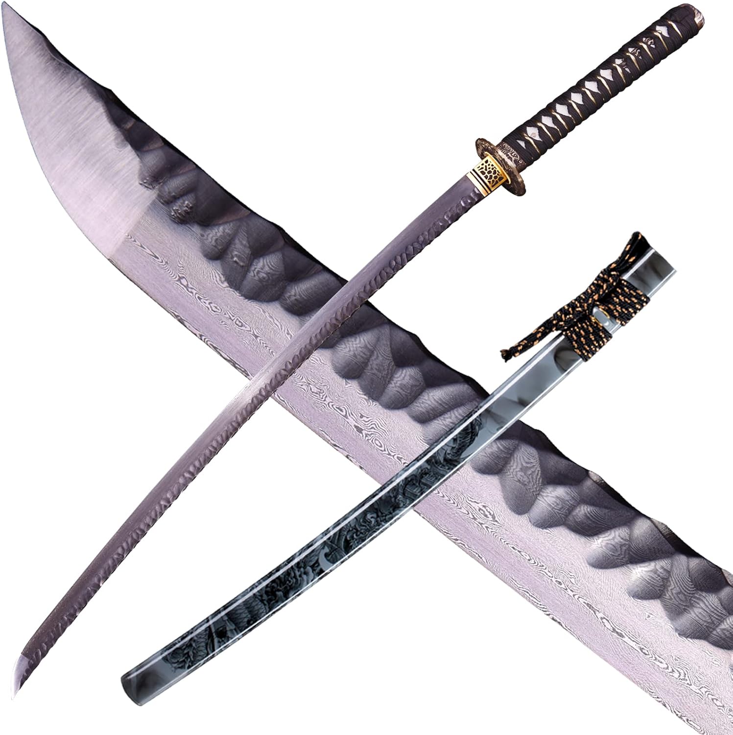 - Katana Blade Material: Damascus Steel;Tsuba And Accessories Material: Pure Copper Dragon Tsuba;Scabbard Material:Hardwood Scabbard, High-Quality Piano Paint