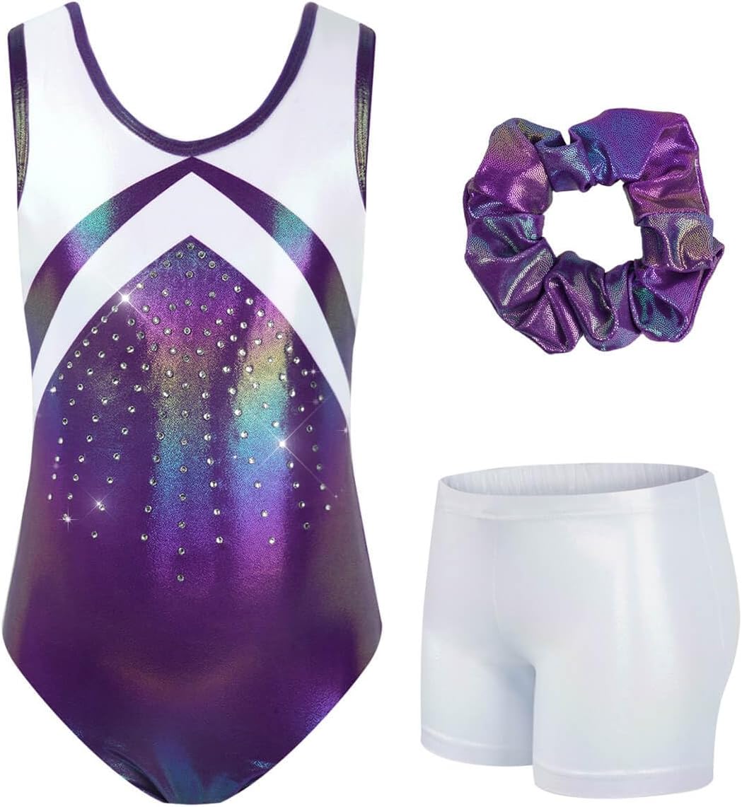 JiAmy Gymnastics Leotards for Girls with Shorts Sparkly Ballet Dance Outfit Activewear for Girls 5-10 Years