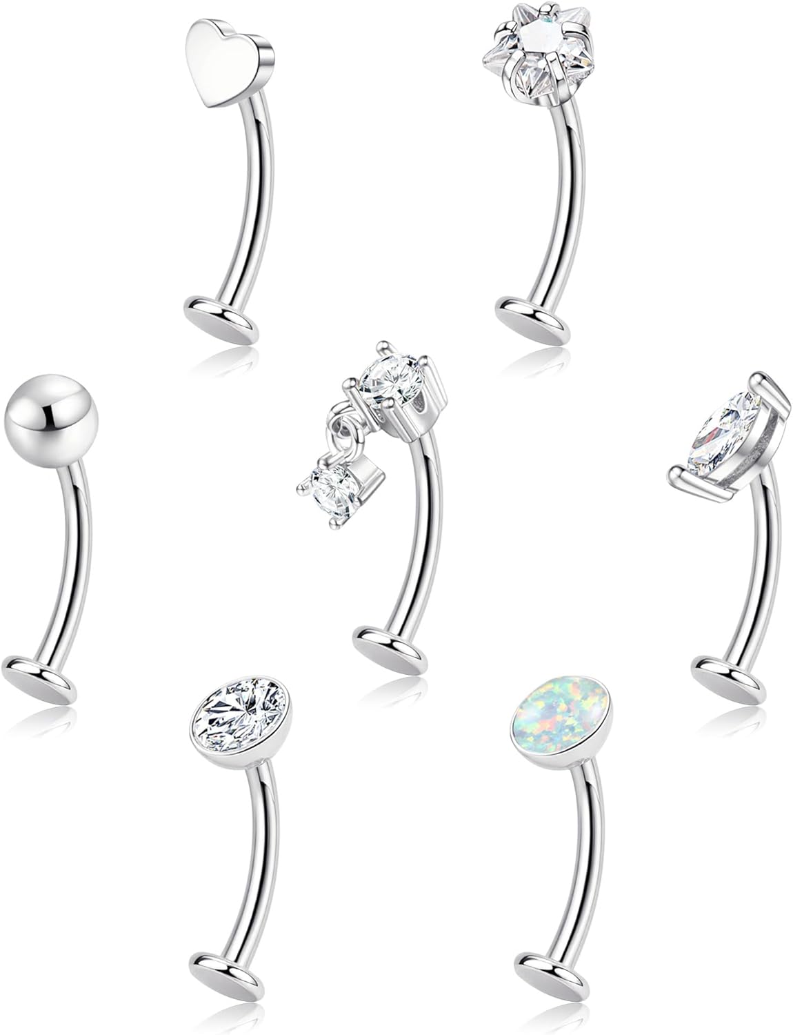 ORAZIO 7 Pcs Belly Button Ring Surgical Steel Hypoallergenic Floating Belly Button Rings for Women Flat Back CZ Opal Internally Threaded Long Bar Navel Piercing Jewelry 14G Gold Silver Tone