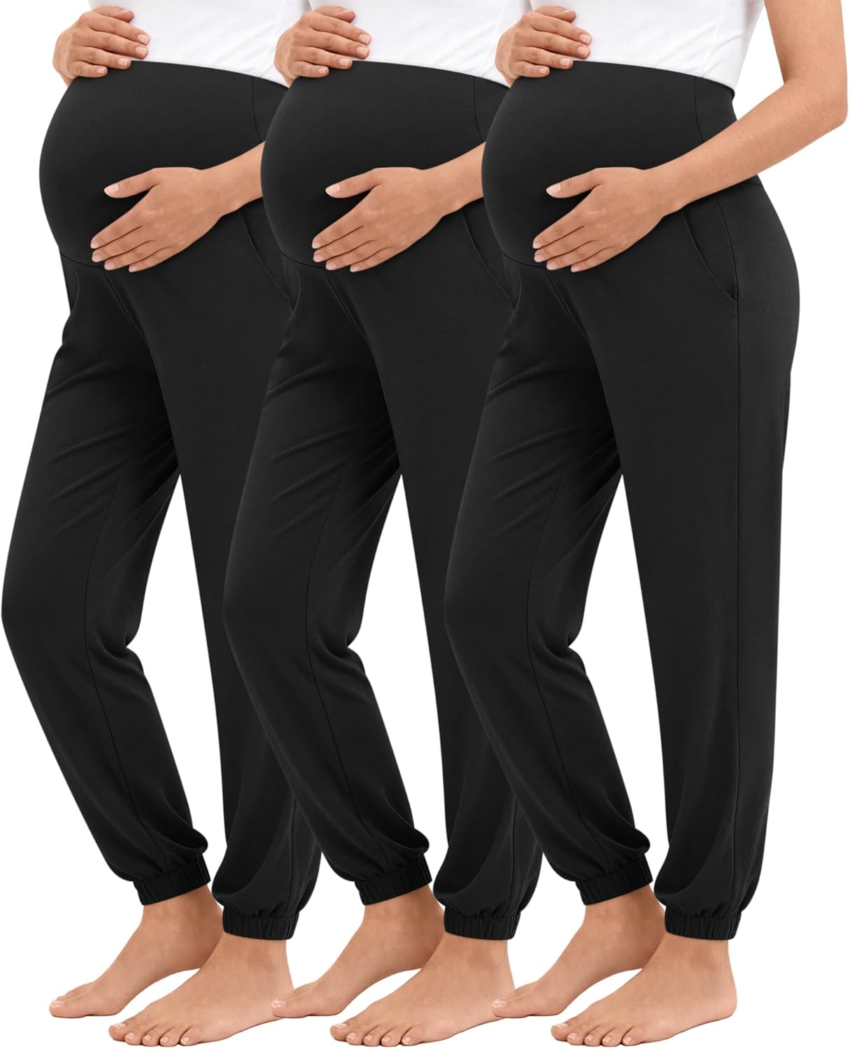 Neer 3 Pack Women's Maternity Pants Over The Belly Stretchy Joggers Pregnancy Casual Lounge Pants with Pockets