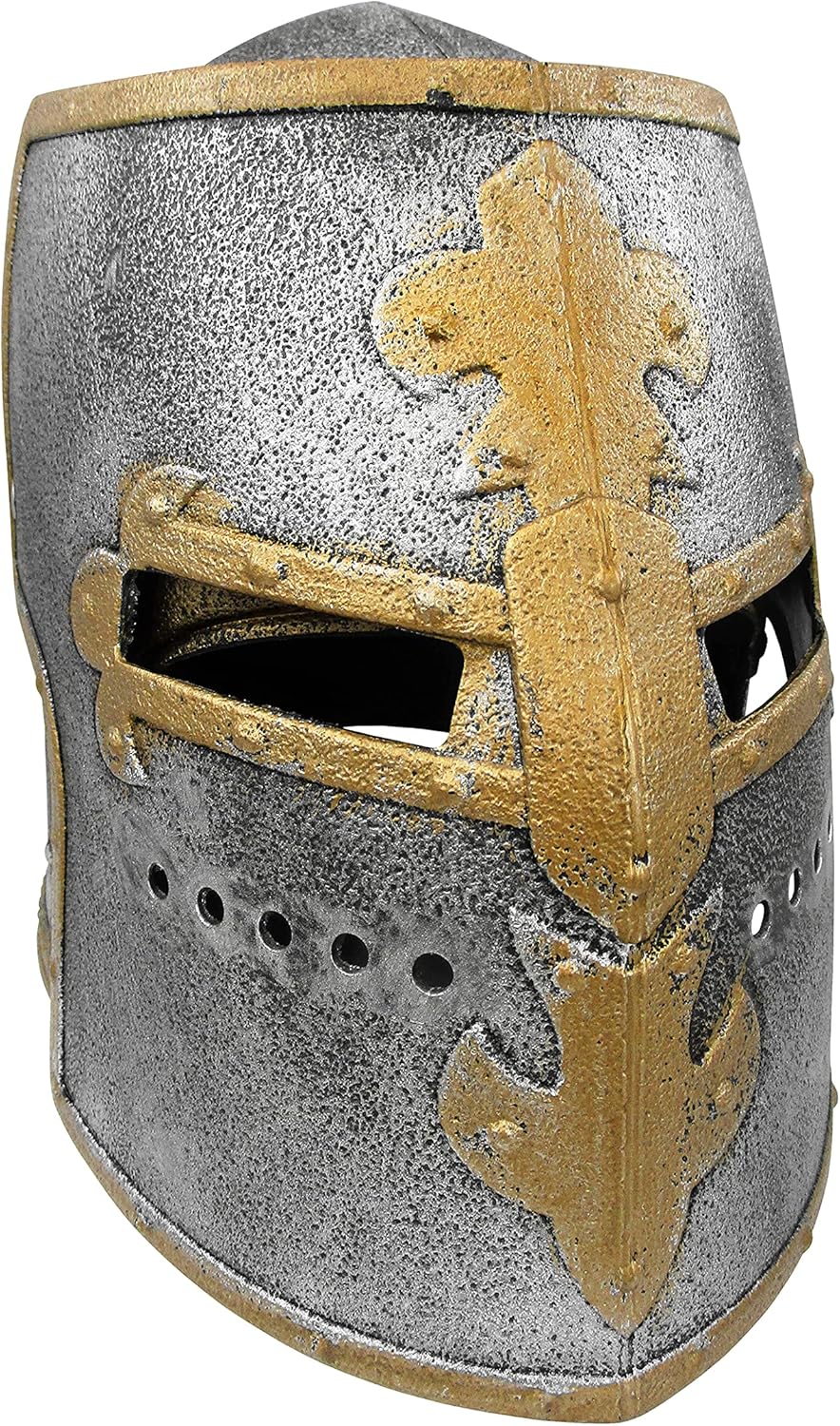 Nicky Bigs Novelties Child Kids Medieval Crusader Knight Helmet With Folding Face Mask Boys Battle Pretend Play Costume Plastic Halloween Cosplay LARP