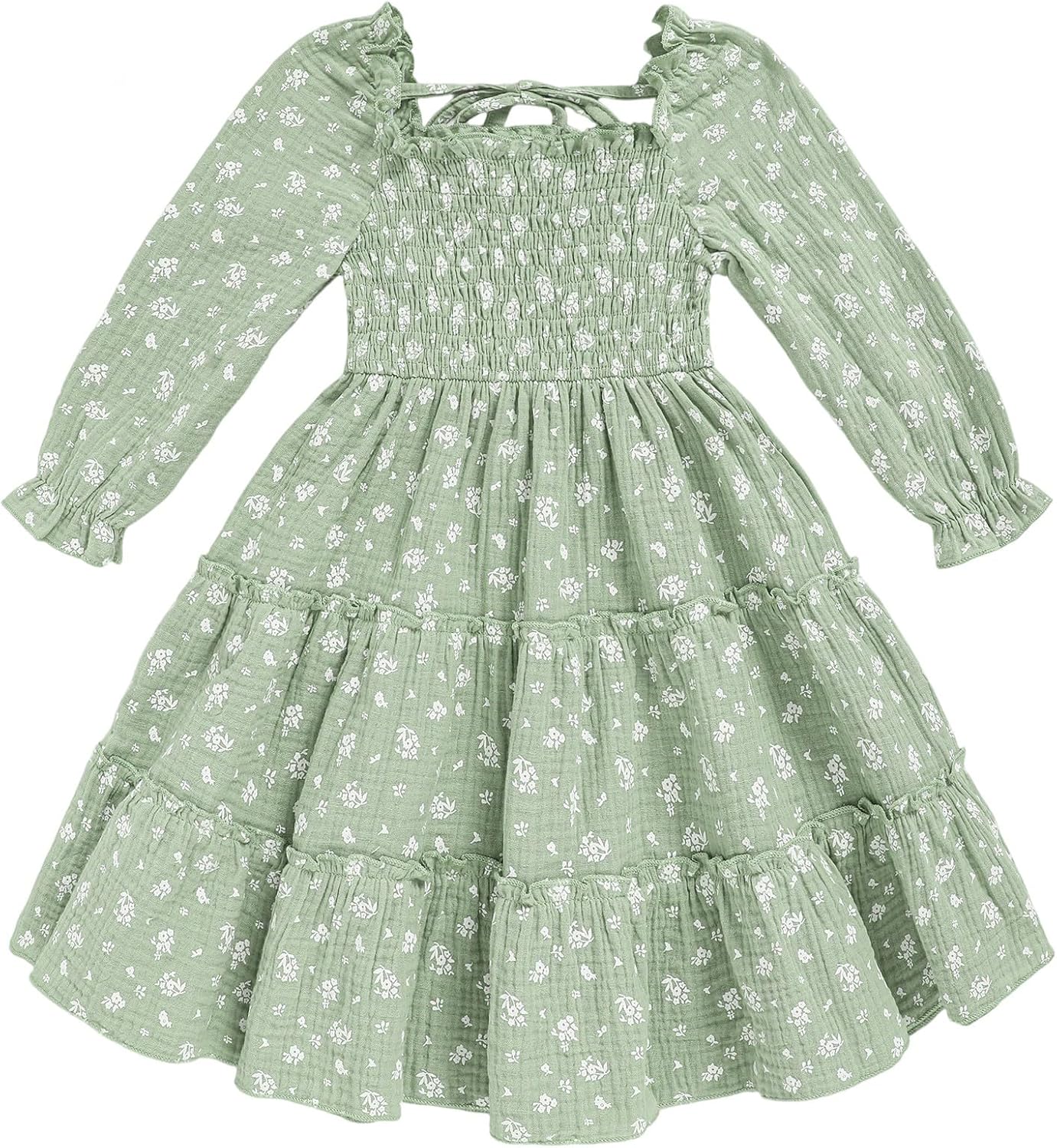 Toddler Girl Dress Long Sleeve Baby Floral Smocked Square Neck Playwear Dress | Spring Fall Casual Dresses 1-6Y