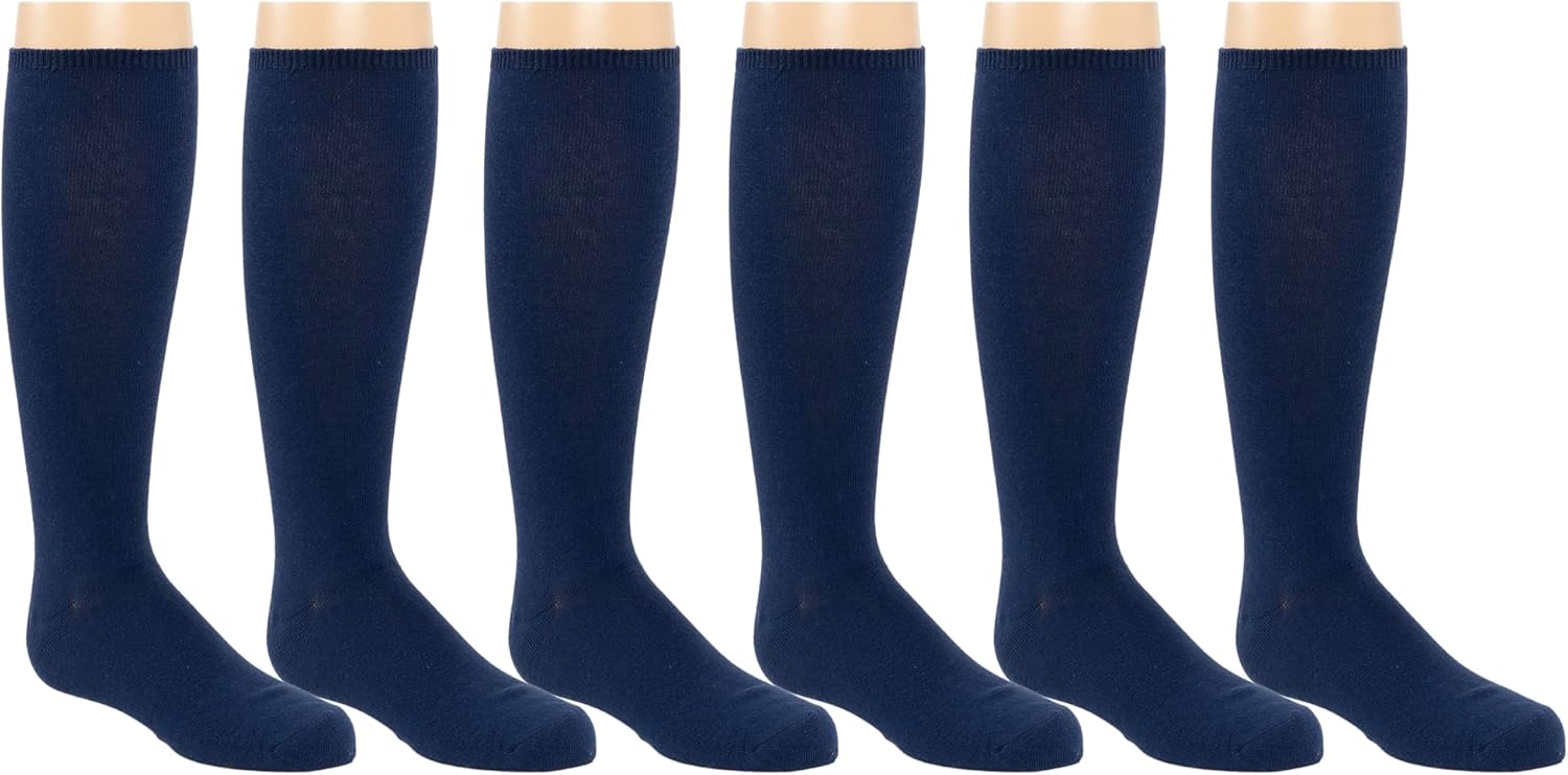 Girls 6 Pack Soft Uniform Knee High Socks, Cable Dress Comfort Seam, White or Navy