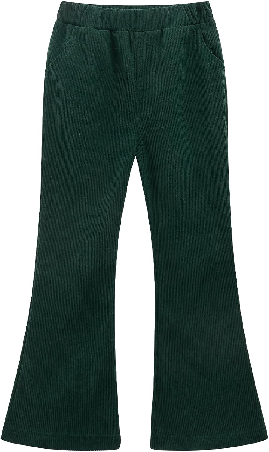Noomelfish Girls Corduroy Flared Pant Fall Winter Bell Bottoms Trousers with Pockets (5-12 Years)