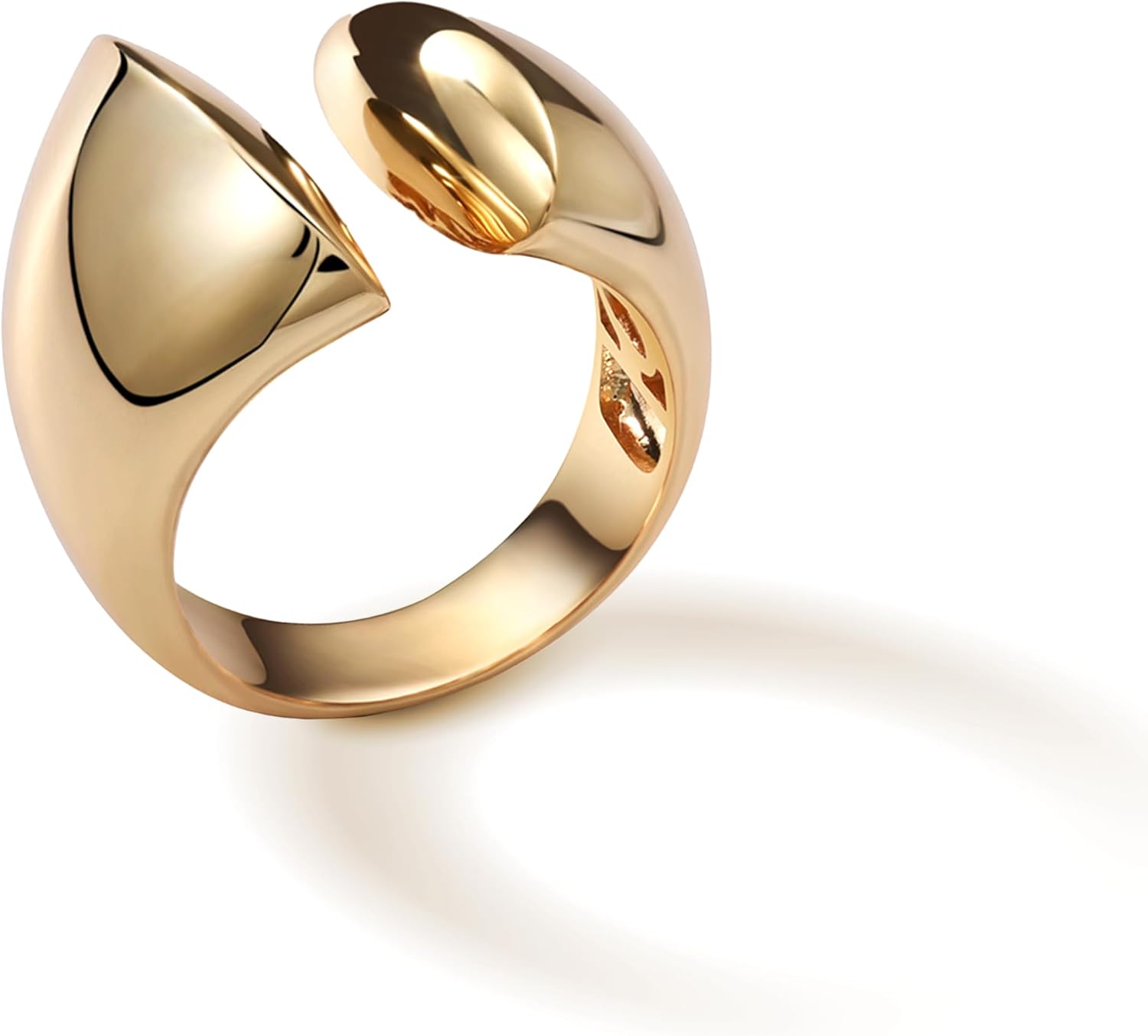 COBI Statement Rings for Women, Croissant Twisted Braided Band & Pave Cubic Zirconia Ring, Open Style, Chunky Dome Ring, Rhodium 18K Gold Plated Stackable Cocktail Rings, Fashion Jewelry, Size 7 8 9