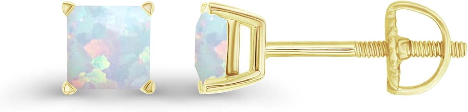 14K Gold Plated 925 Sterling Silver Hypoallergenic 4mm Square Princess Cut Genuine Birthstone Solitaire Screwback Stud Earrings