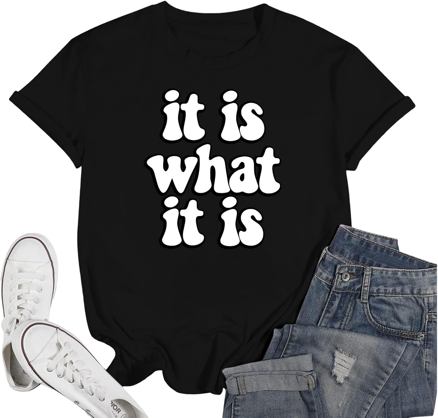 Funny Shirts for Women Graphic Tee It is What It is Shirt Humorous Letter Print Tshirt Casual Cotton Tops