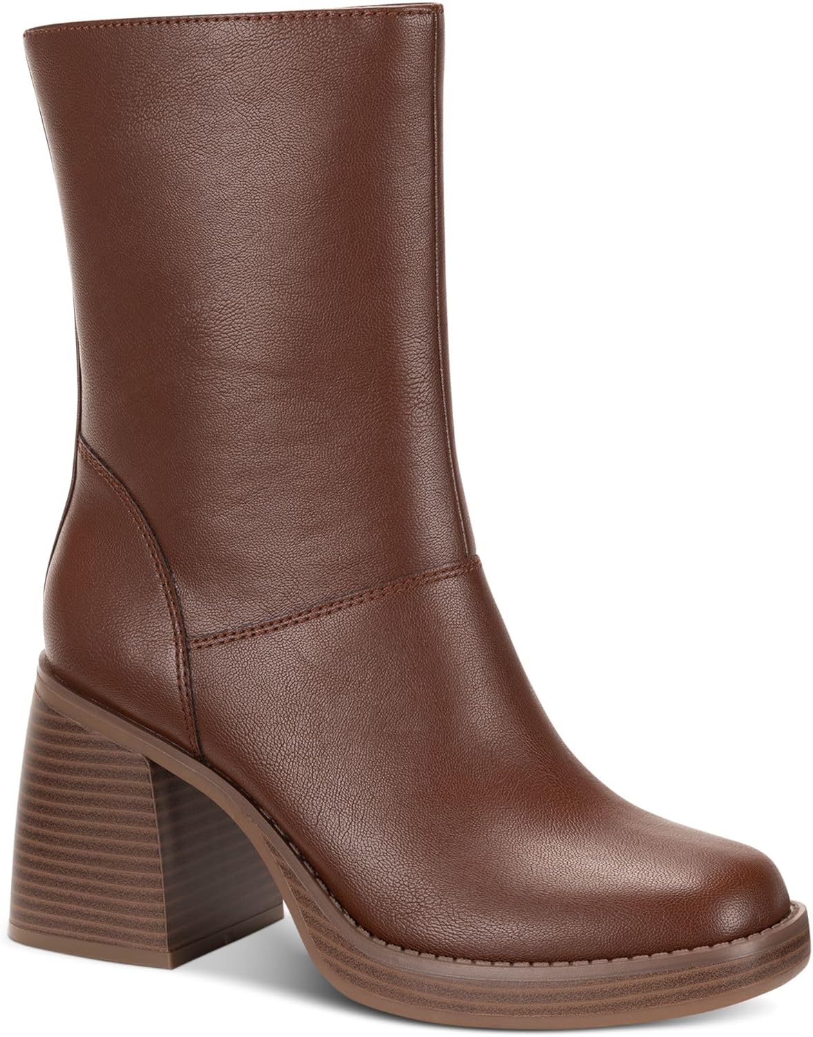 Soesyi Women's Square Toe Stretch Mid Boots Calf Slouchy Platform Booties Suede Zip Chunky Block Heeled Sock Ankle Boot Shoes