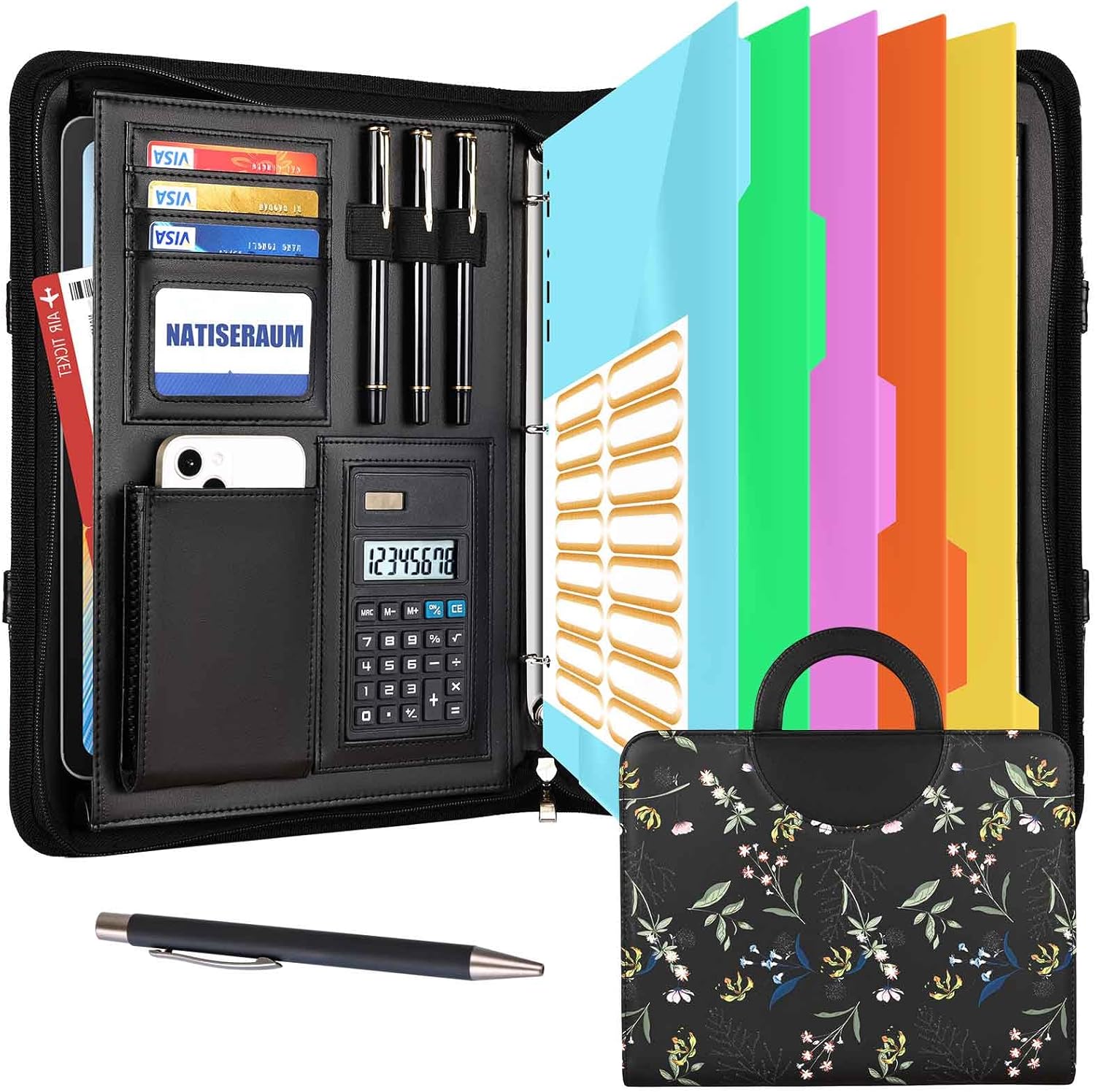 Portfolio Binder 3 Ring Includes Pen and 5 Dividers with 10 Pockets, Padfolio Organizer with Zipper for Men and Women, Includes A4 Notepad for Business, School, Work