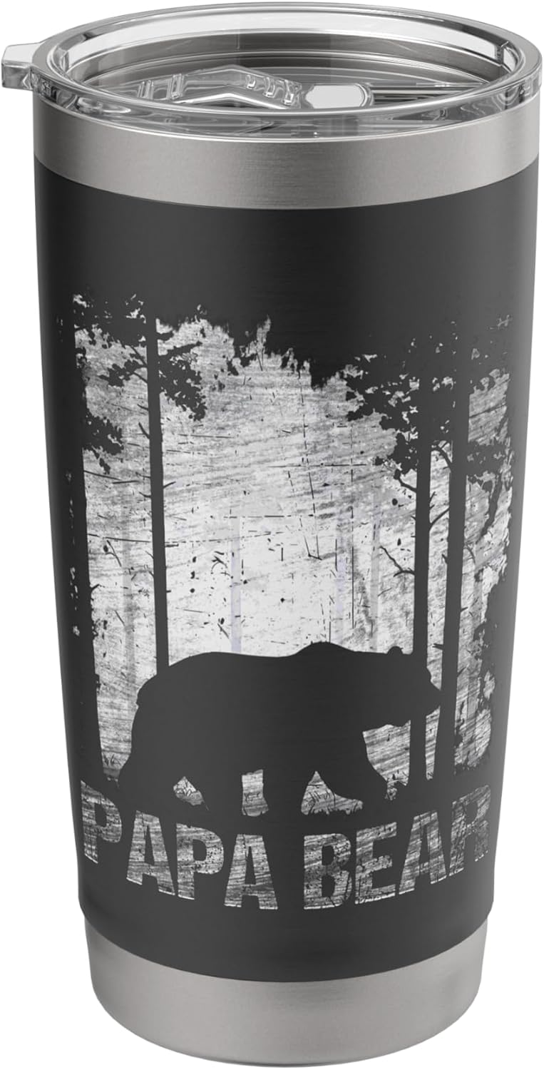 Papa Bear Silhouette Forest Graphic Stainless Steel Insulated Tumbler