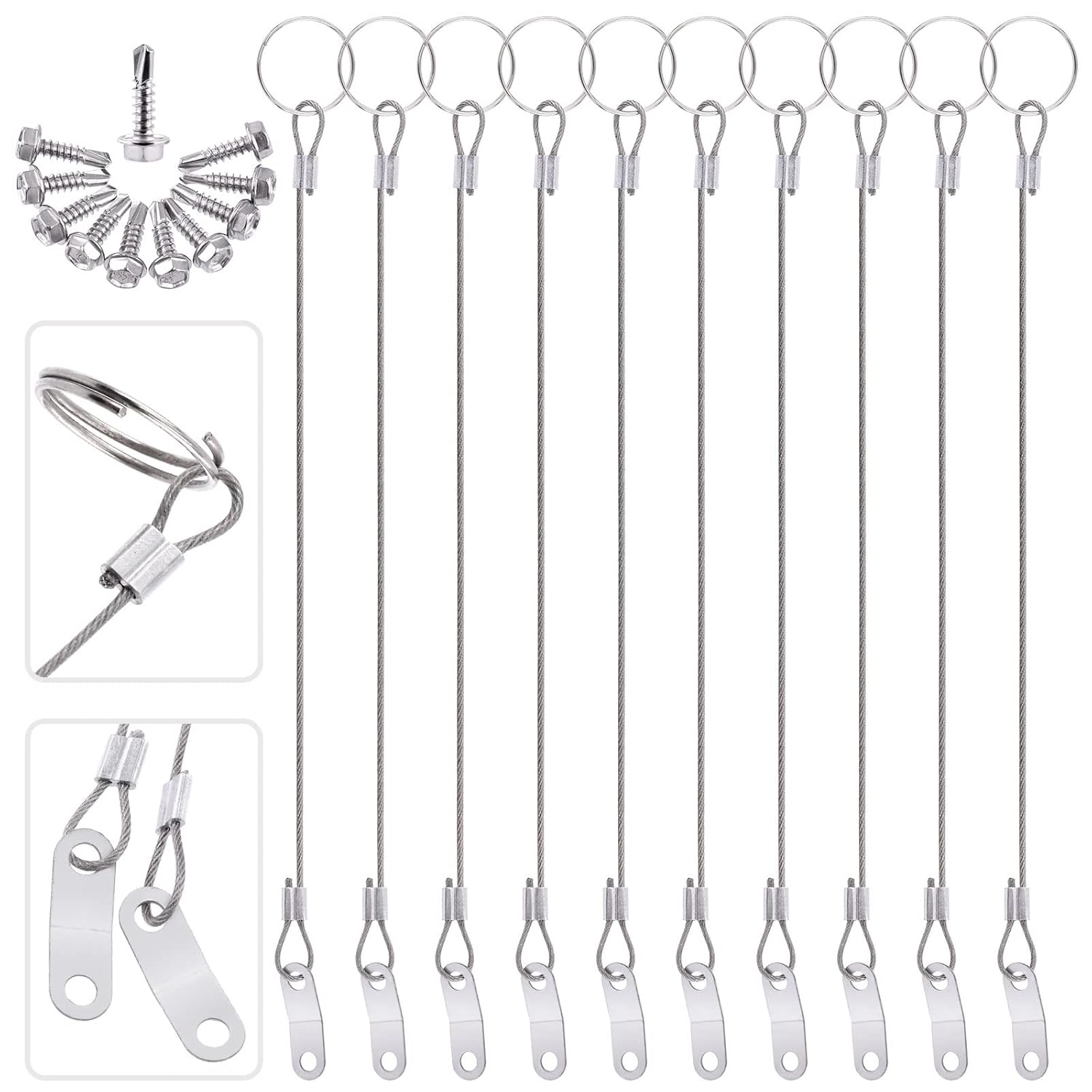 Glarks 20Pcs 11 Inches Lanyard Cable Set Including 10Pcs 304 Stainless Steel Safety Tether Wire with Quick Release Ring and Rubber Coating and 10Pcs Self Drilling Hex Head Screws for Car Boat Fastener