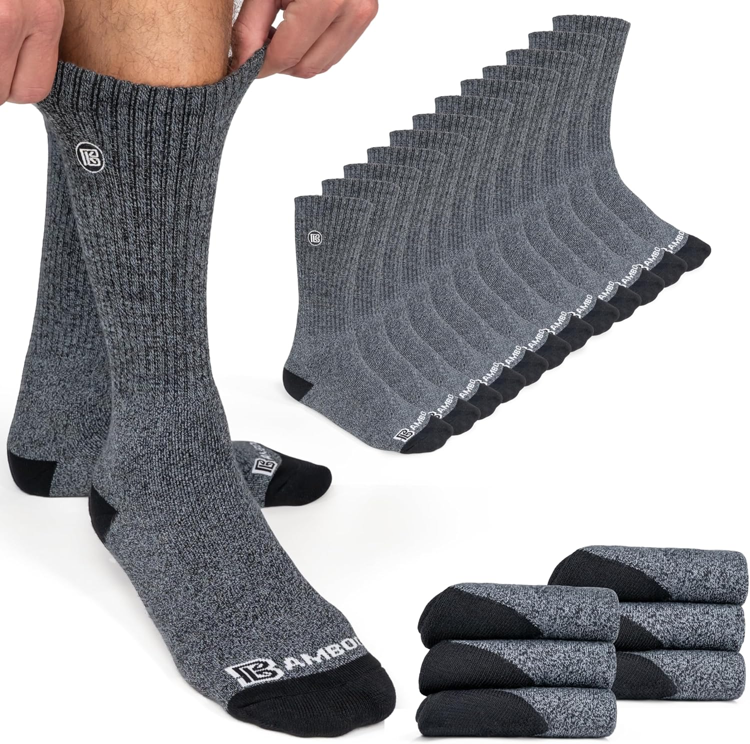 Premium Bamboo Rayon Crew Work Socks- Moisture Wicking, Odor Eliminating Heather Gray Socks for Men Size 13-15 - 6 Pair