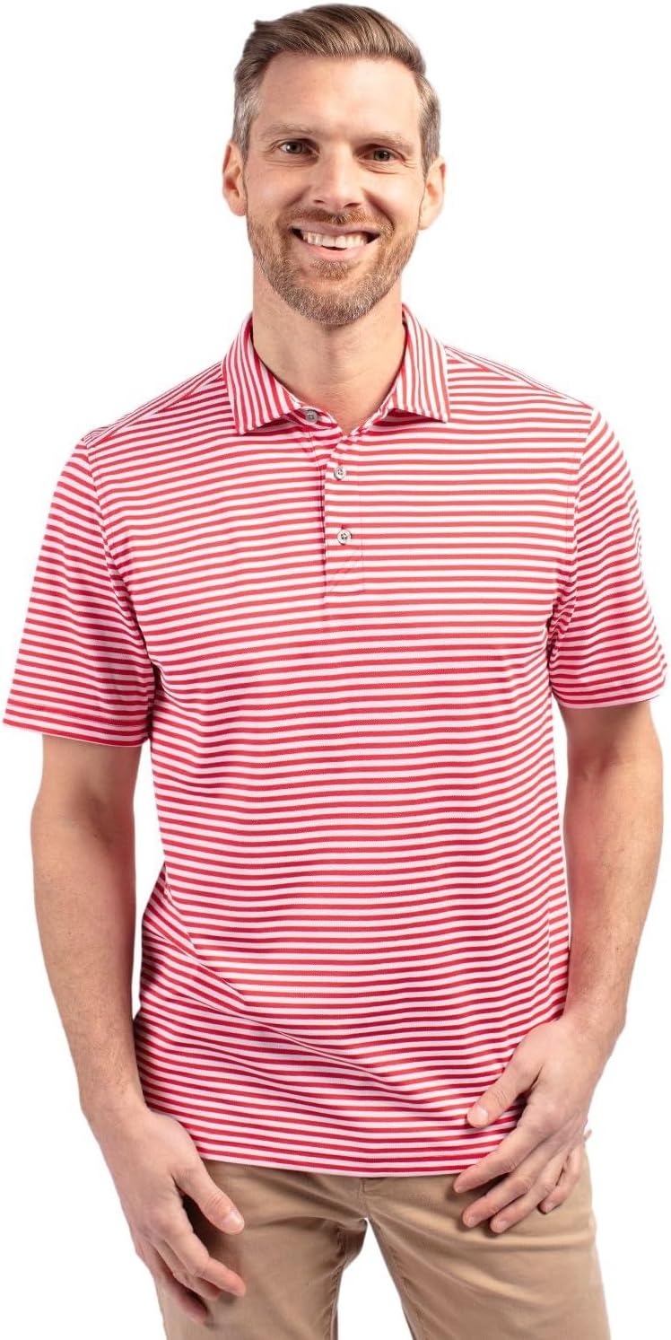 Cutter & Buck Mens Short Sleeve Virtue Eco Pique Stripe Recycled Mens Big and Tall Polo