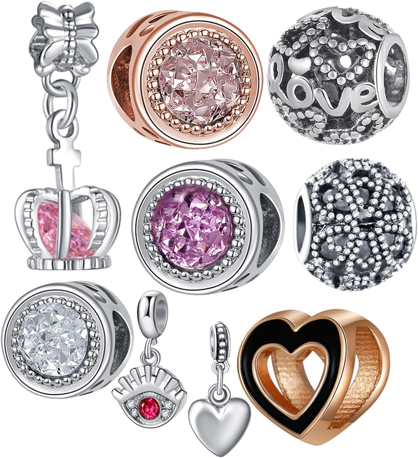 9 Pack Plated Silver Spacer Beads Charms fit Bracelet Dangle Set